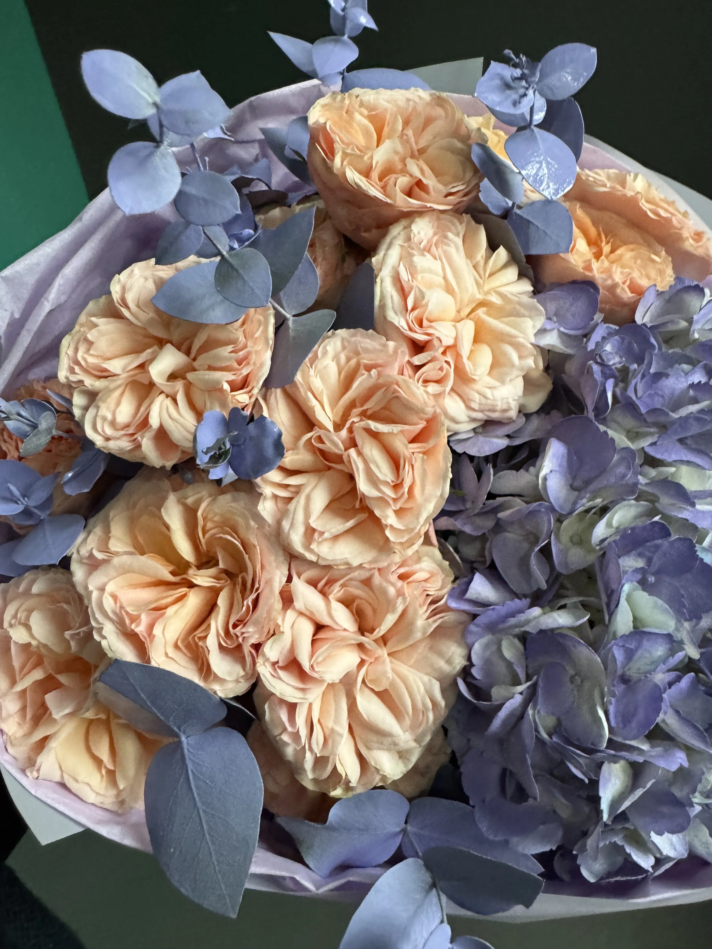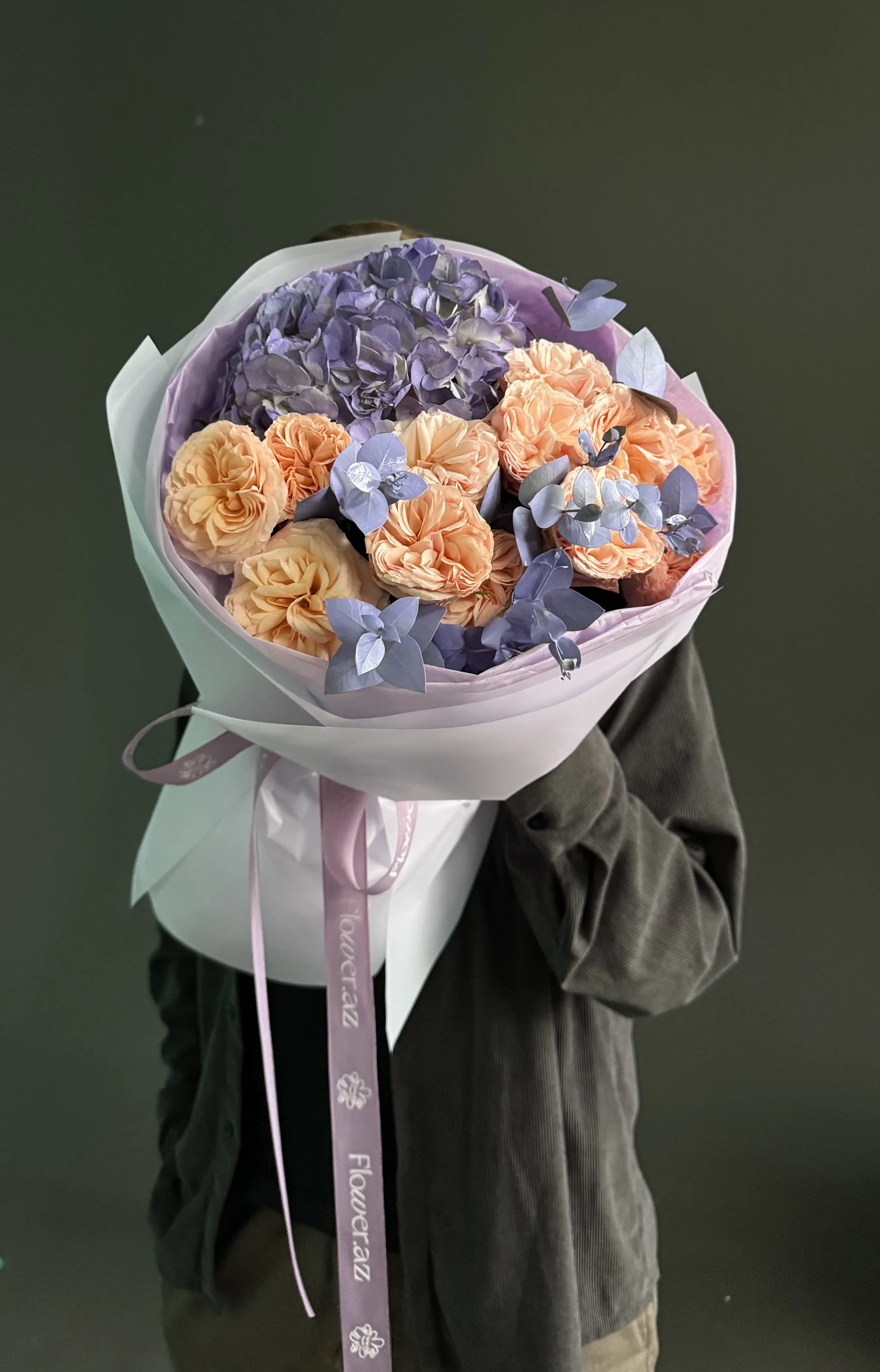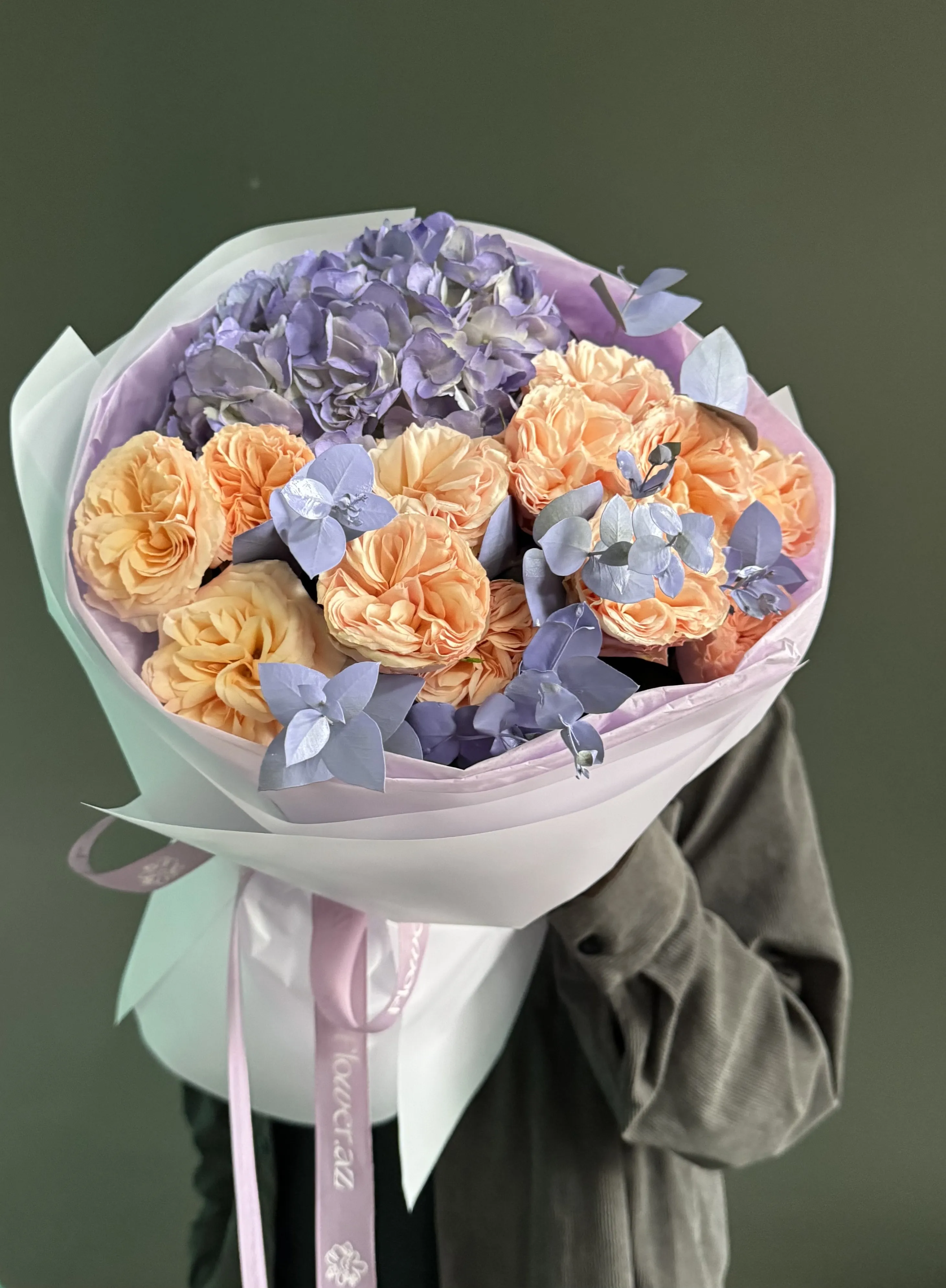 Lavanda Parıltısı — Hidrangea və Garden Rose Buketi