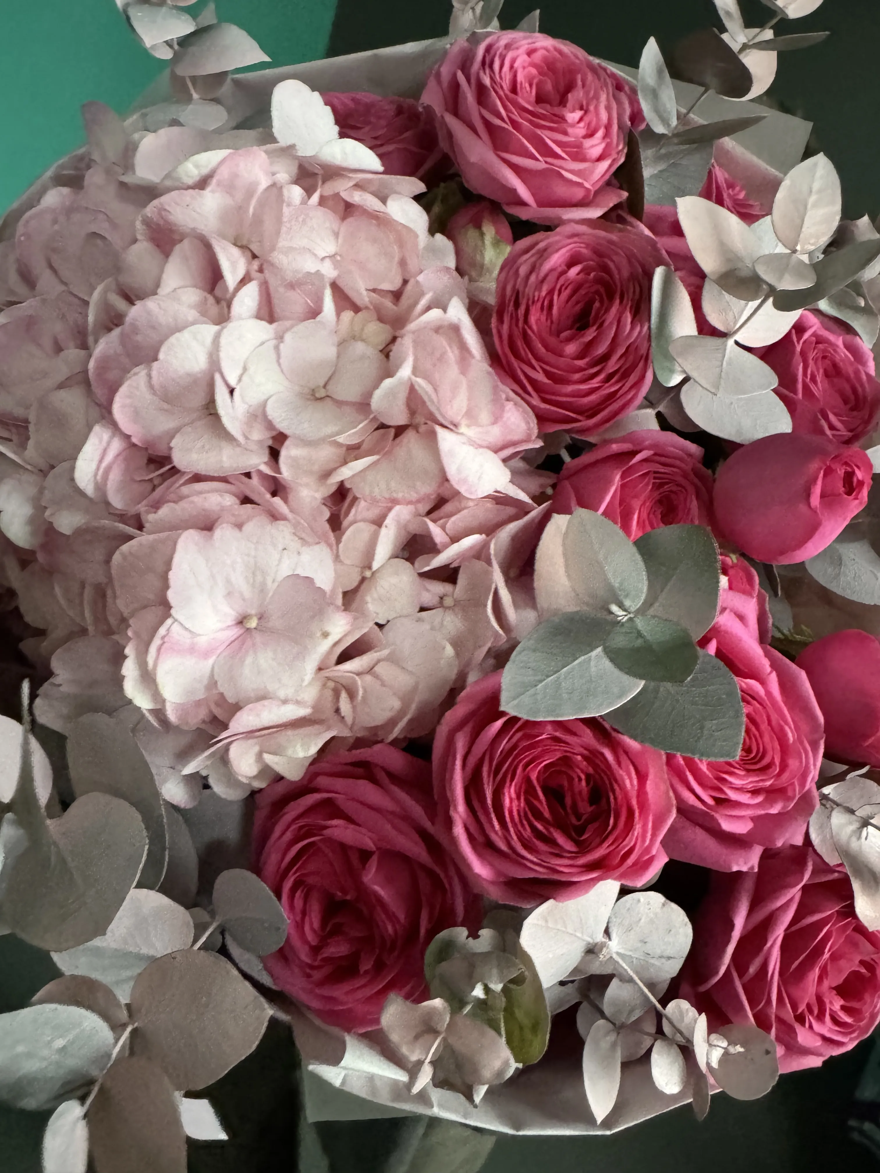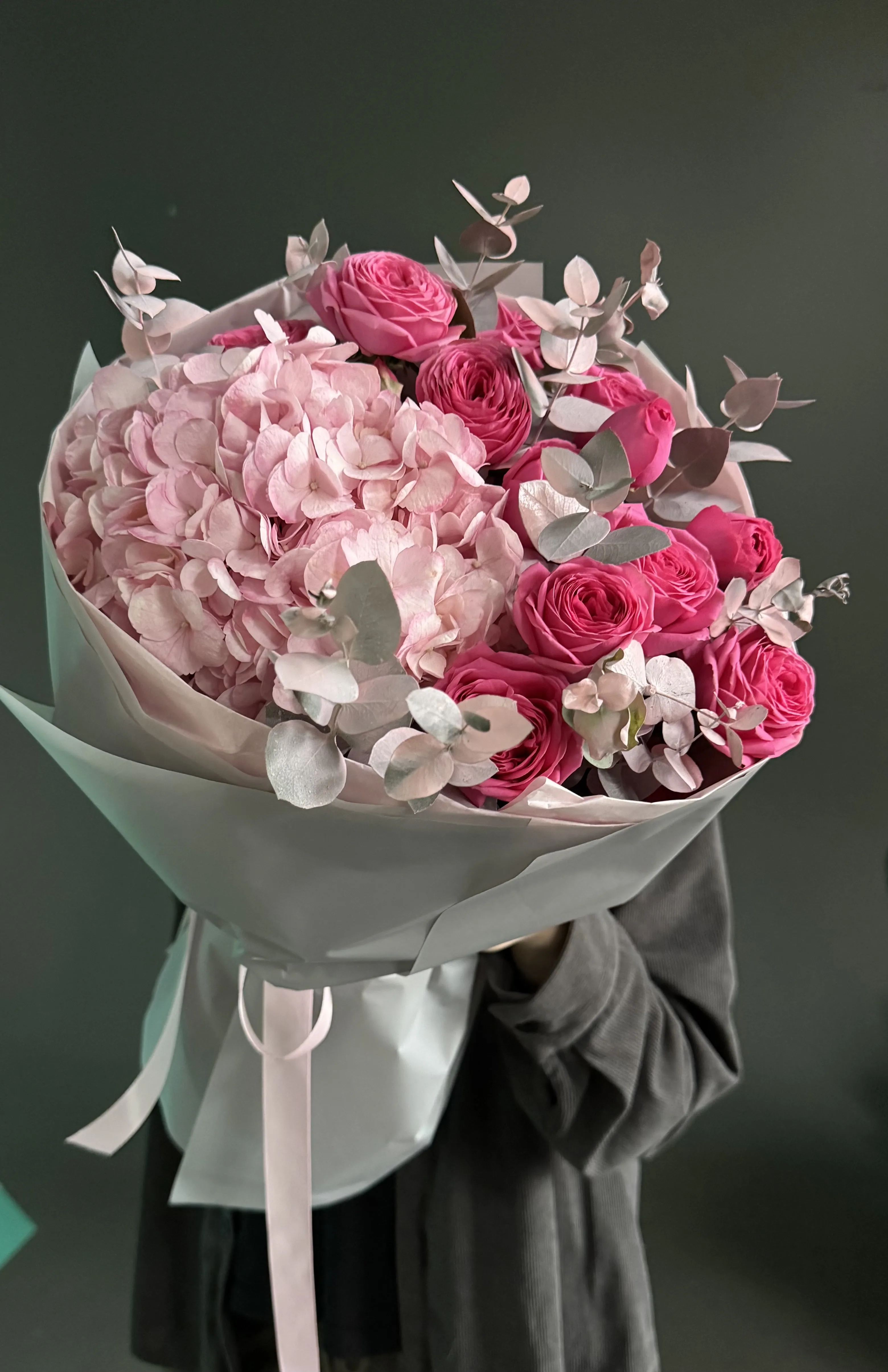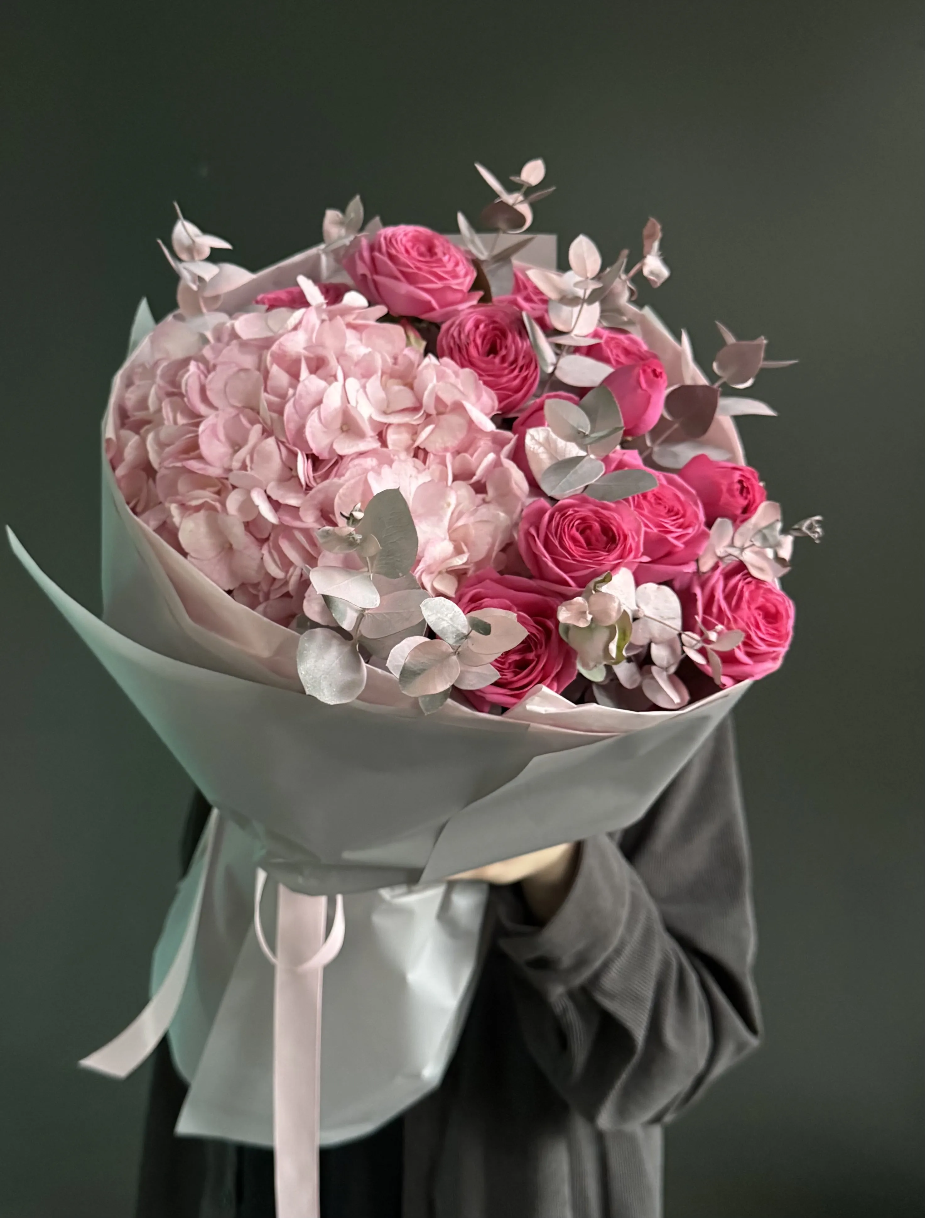 Pudra & Fuksiya Ahəngi — Hidrangea və Garden Rose Buketi
