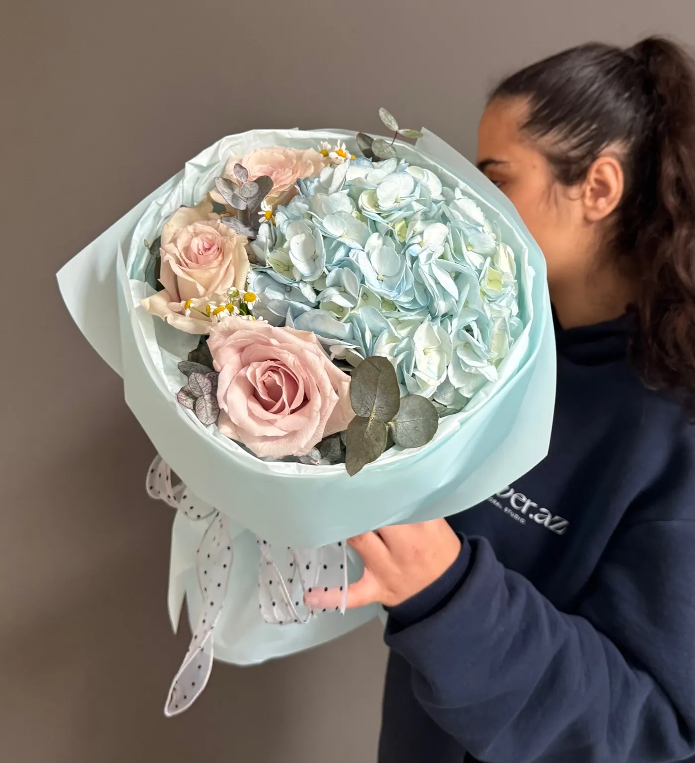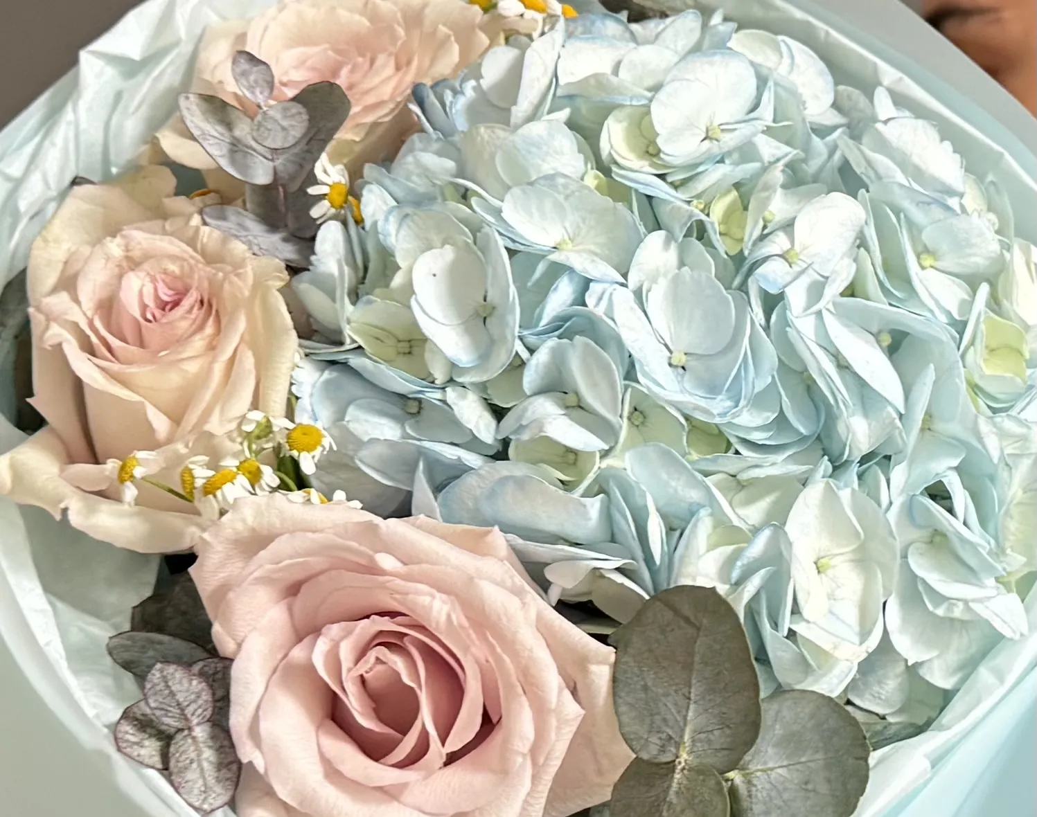 Pudra Tonları — Gül və Hidrangea Buketi