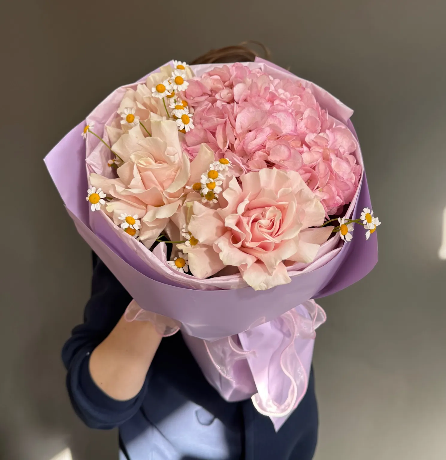7 Bənövşəyi Hortensiya Buketi Çəhrayı