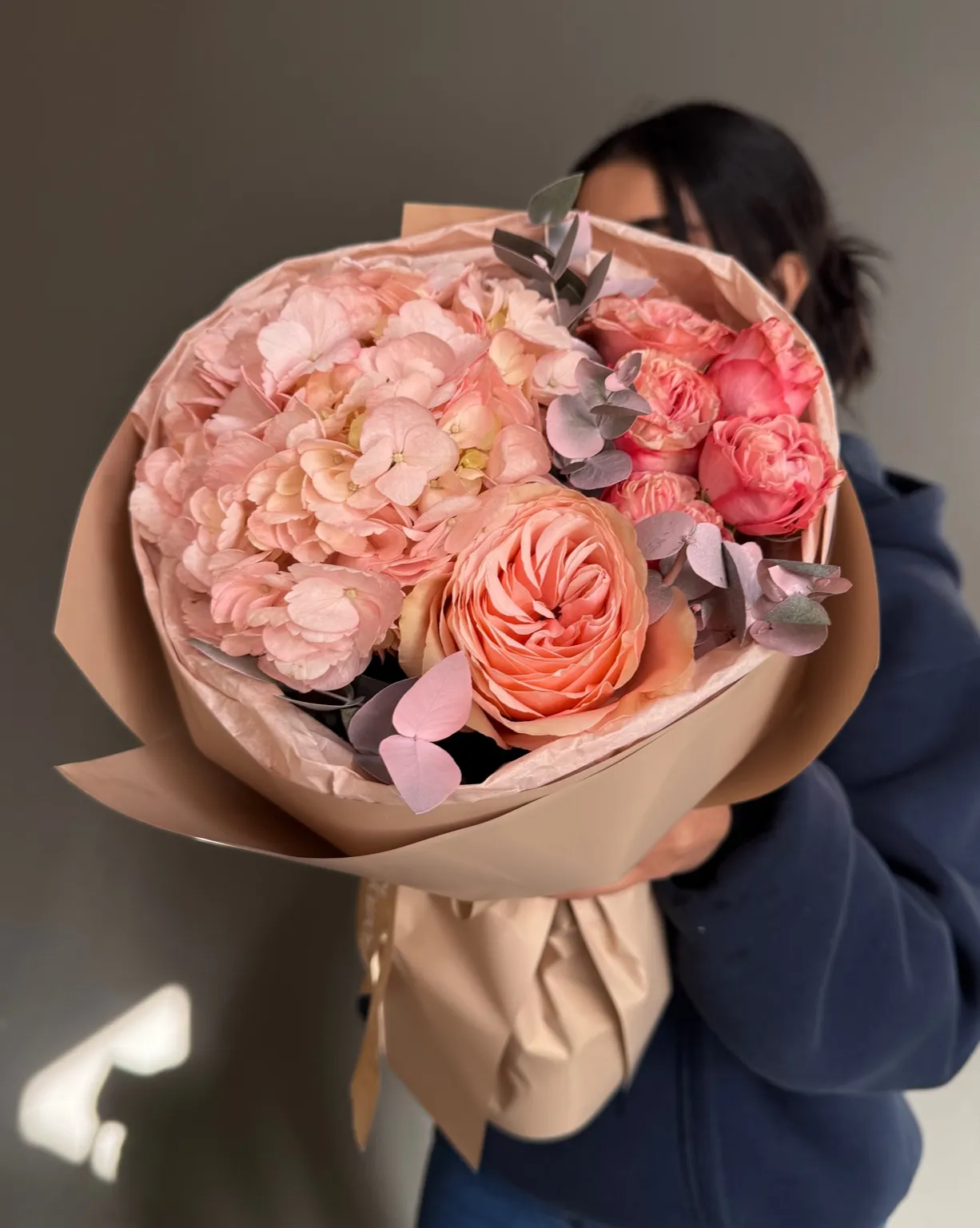 Lavanda Parıltısı — Hidrangea və Garden Rose Buketi