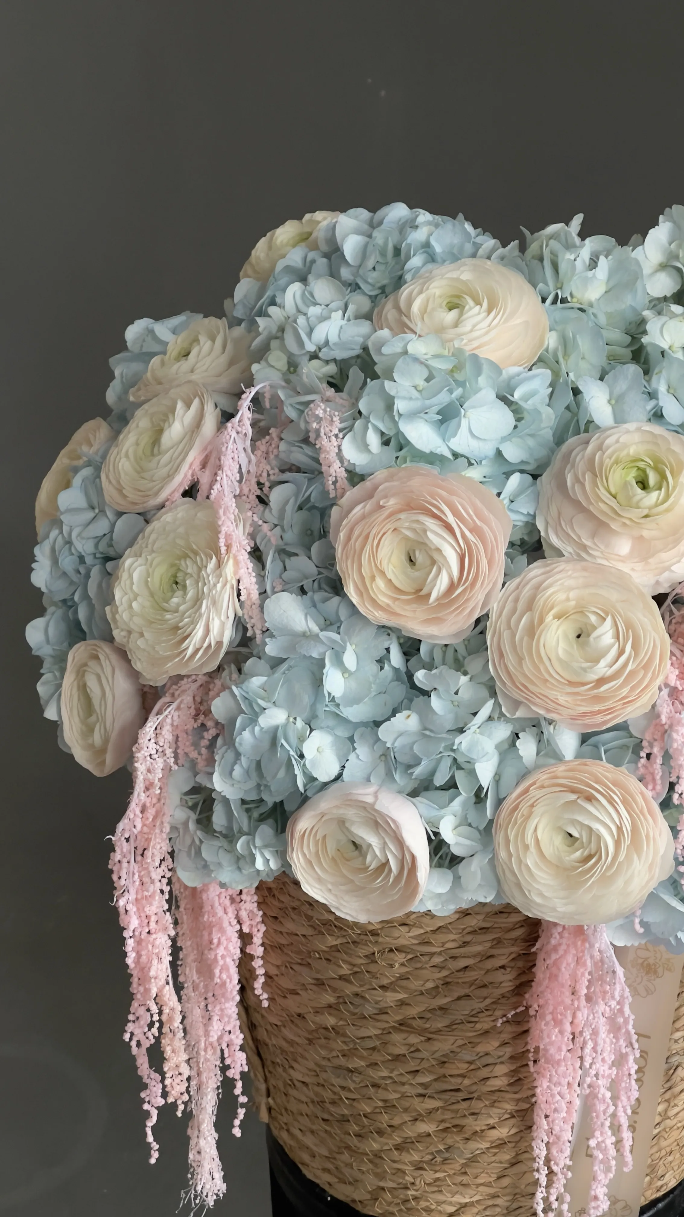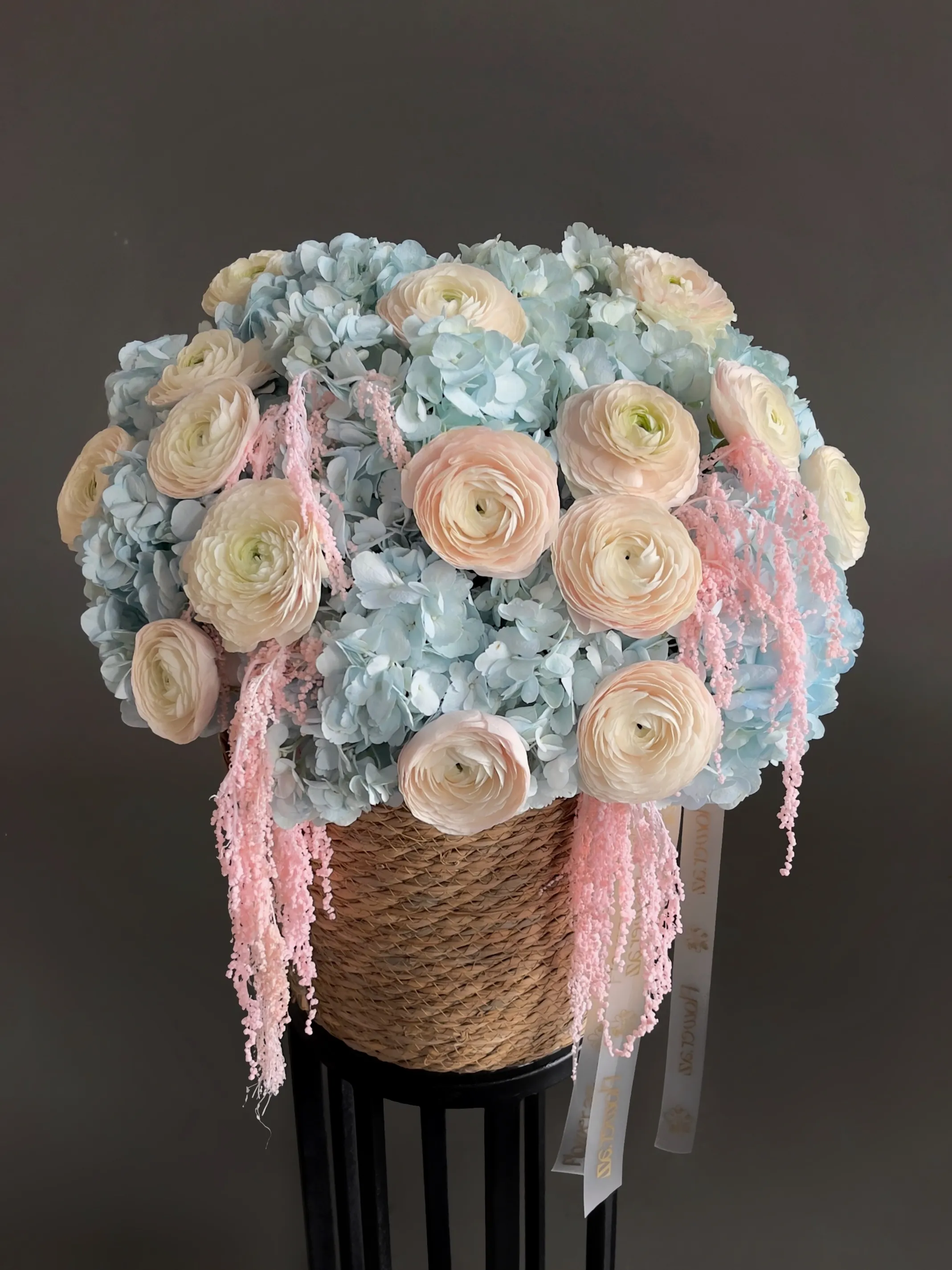 Premium Səbət Kompozisiyası (Hortensiya & Pionvari Qızılgül & Orxideya)
