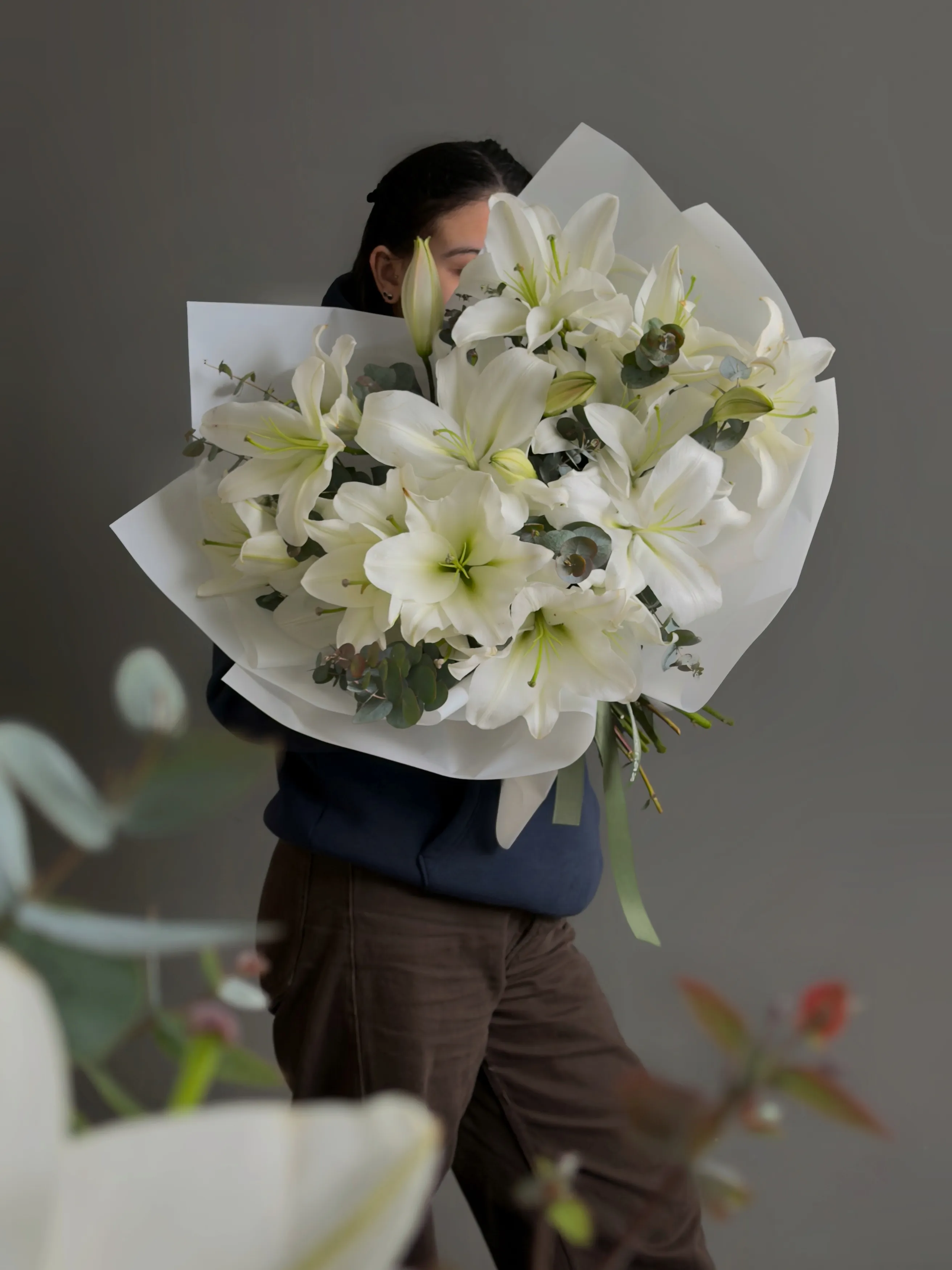 Ağ Zəriflik Zanbaq Buketi (M və L)