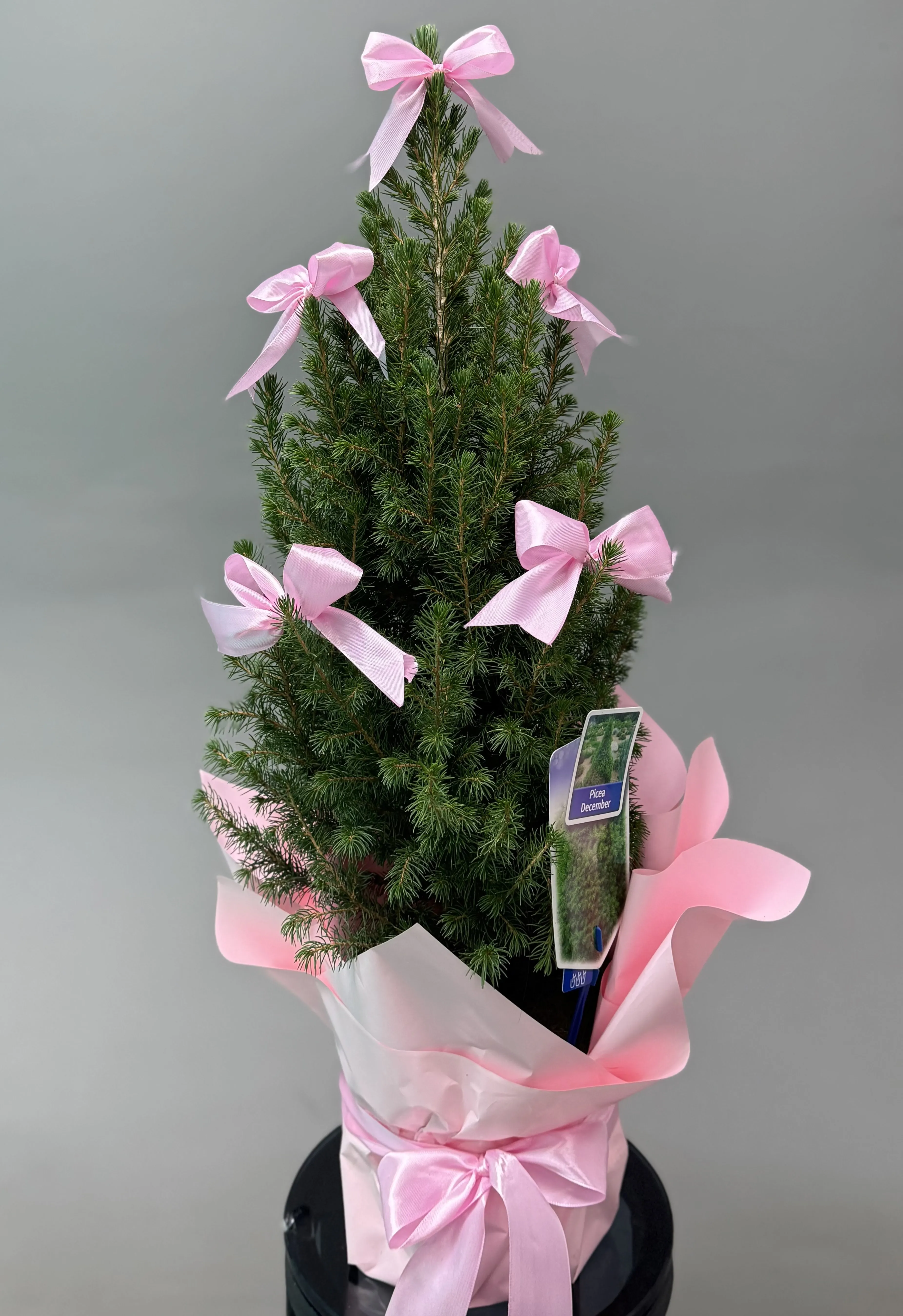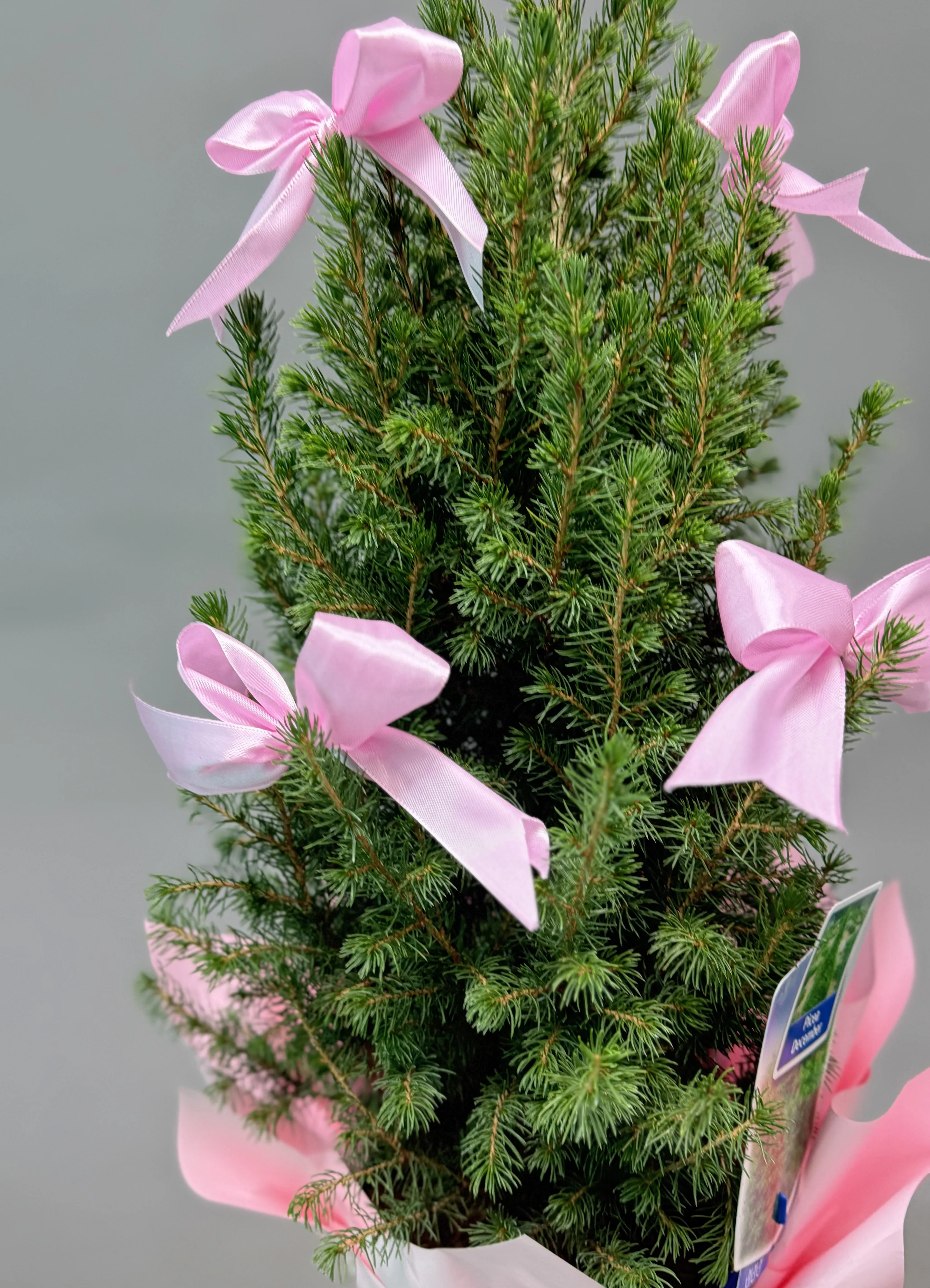 Şirin Yeni İl — Çəhrayı Bantlı Canlı Mini Şam Ağacı