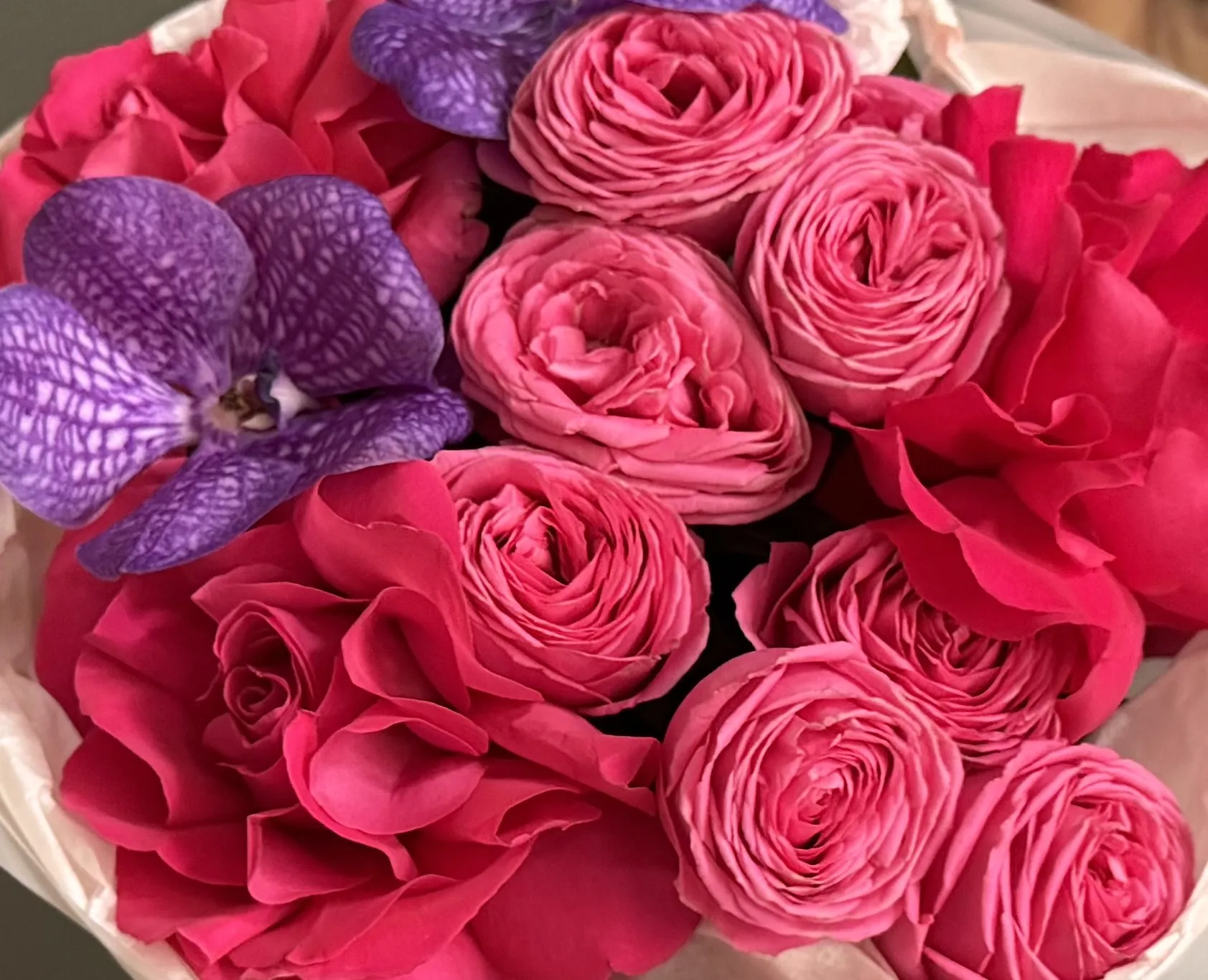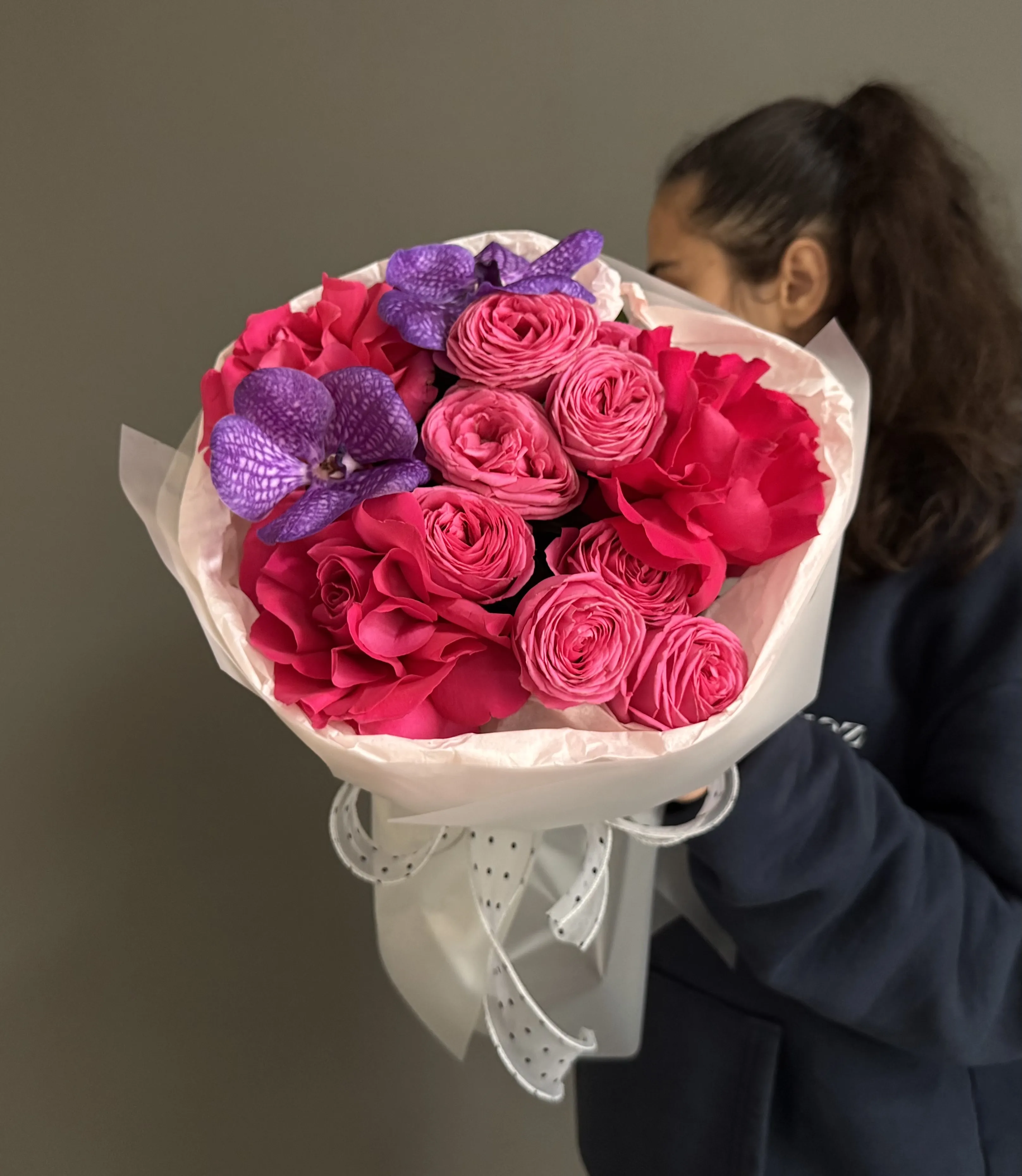 Zümrüd Harmoniya-Xrizantema, Hidrangea və Qızılgül Buketi