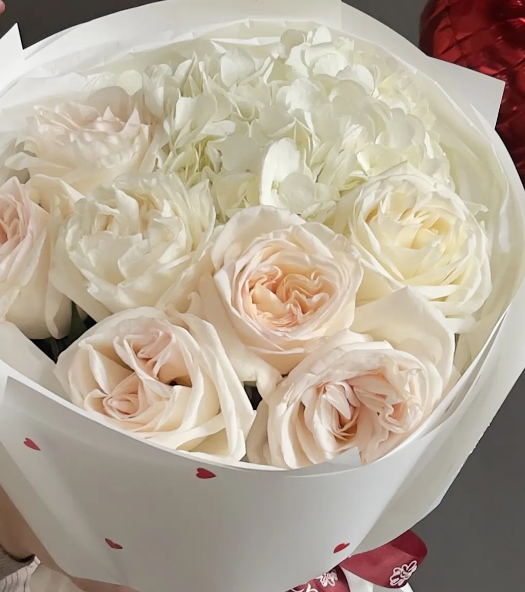 Hydrangea, Fragrant roses, Orchid, Anthurium
