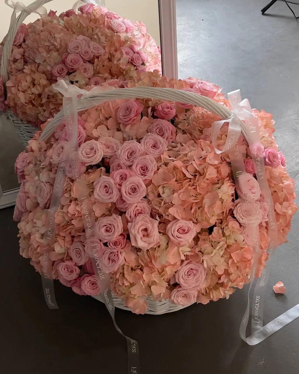 Zümrüd Harmoniya-Xrizantema, Hidrangea və Qızılgül Buketi