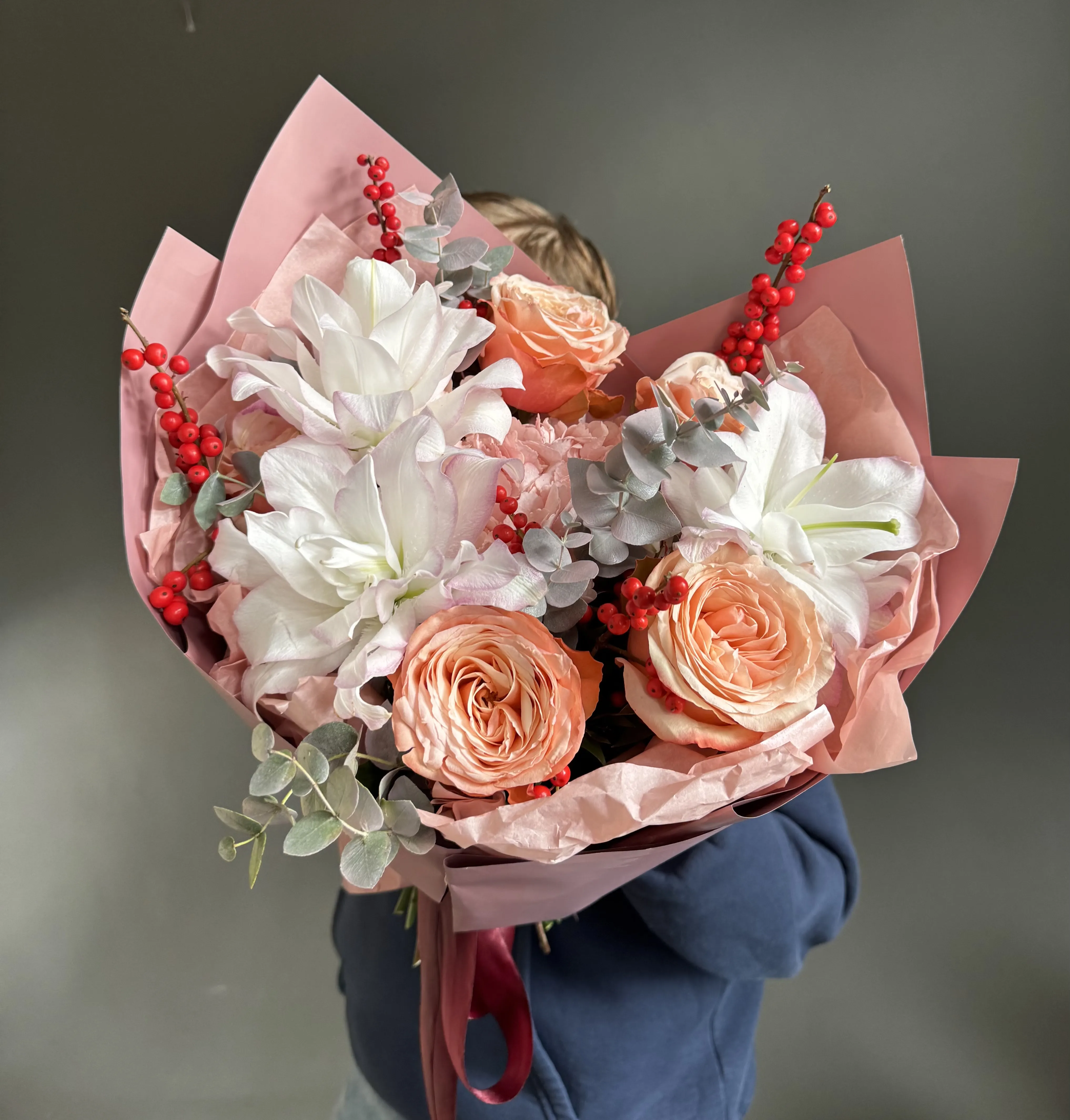 Zümrüd Harmoniya-Xrizantema, Hidrangea və Qızılgül Buketi