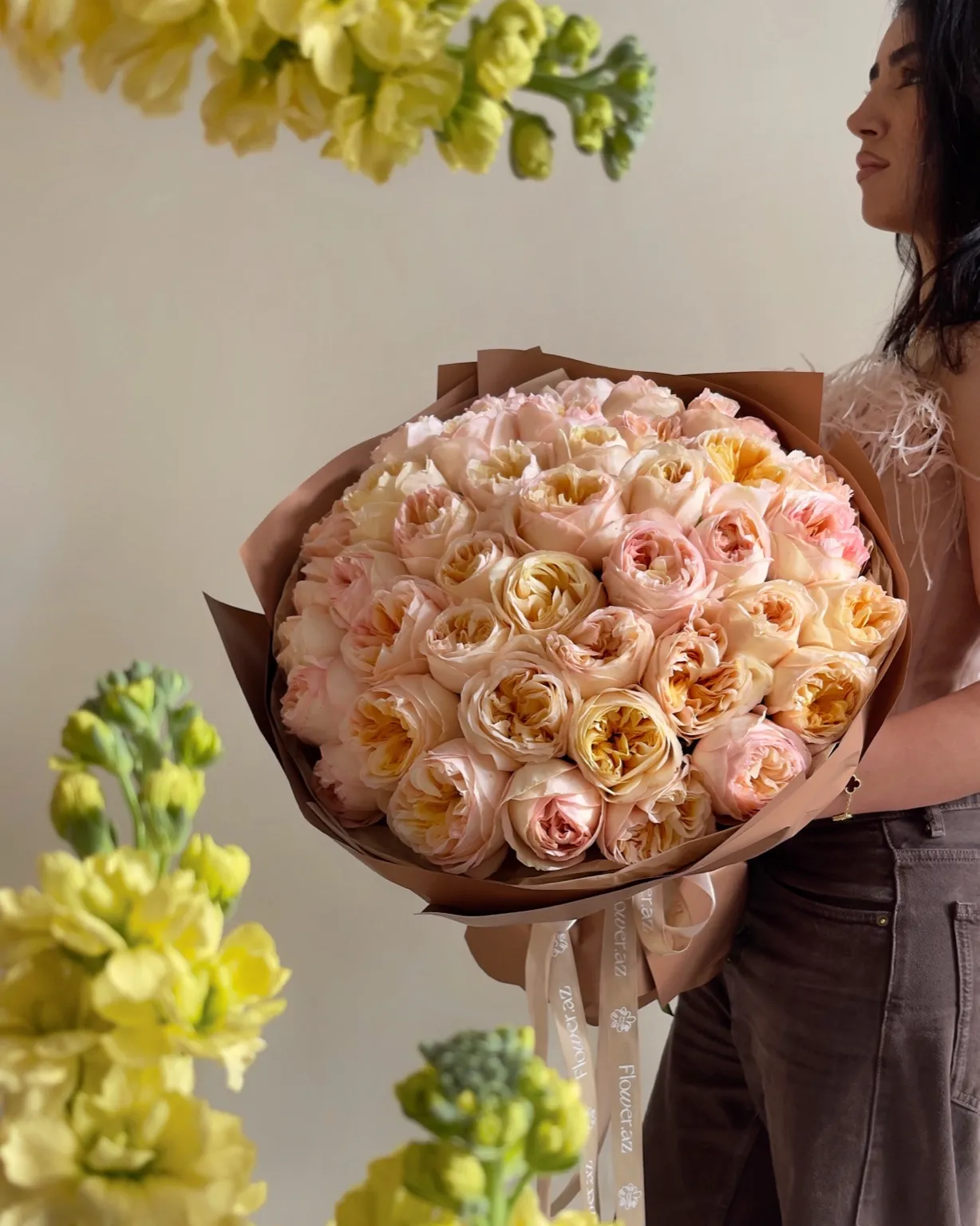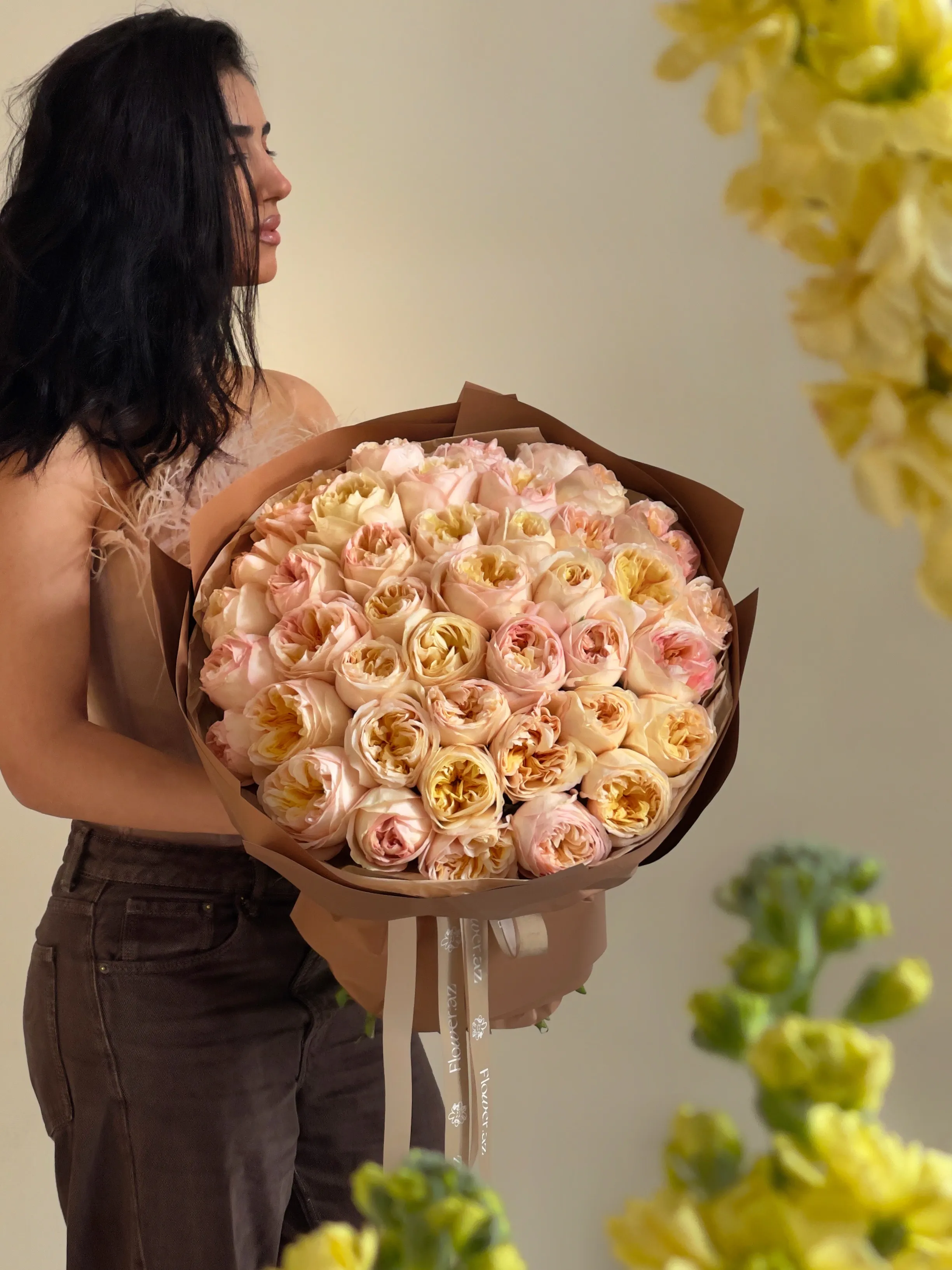 41 ədəd Pionvari Şaftalı Qızılgül Buketi